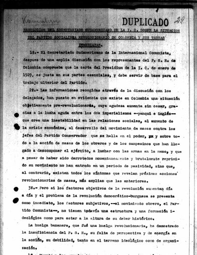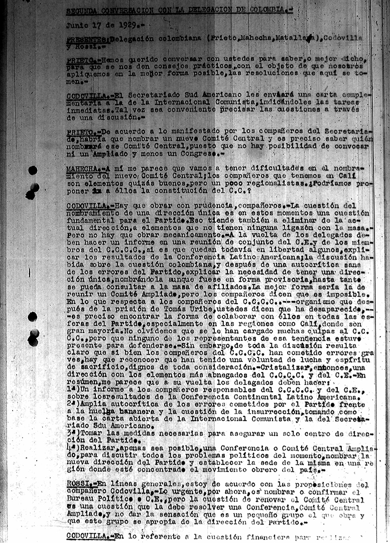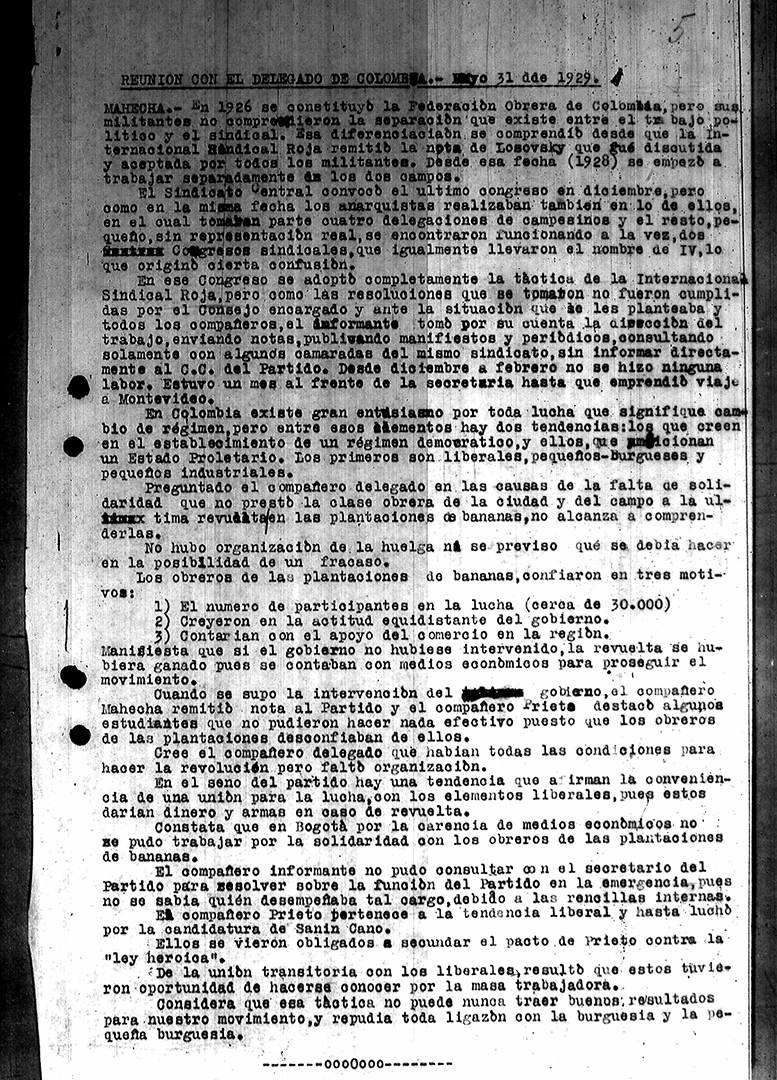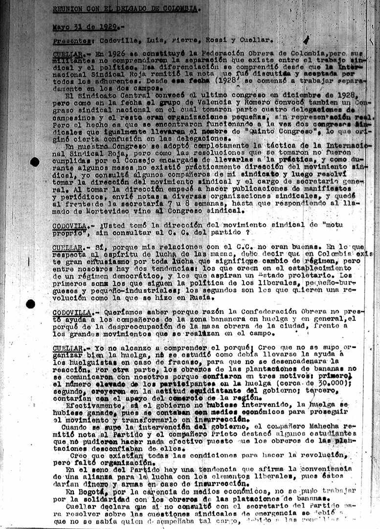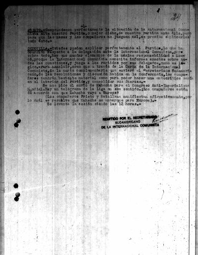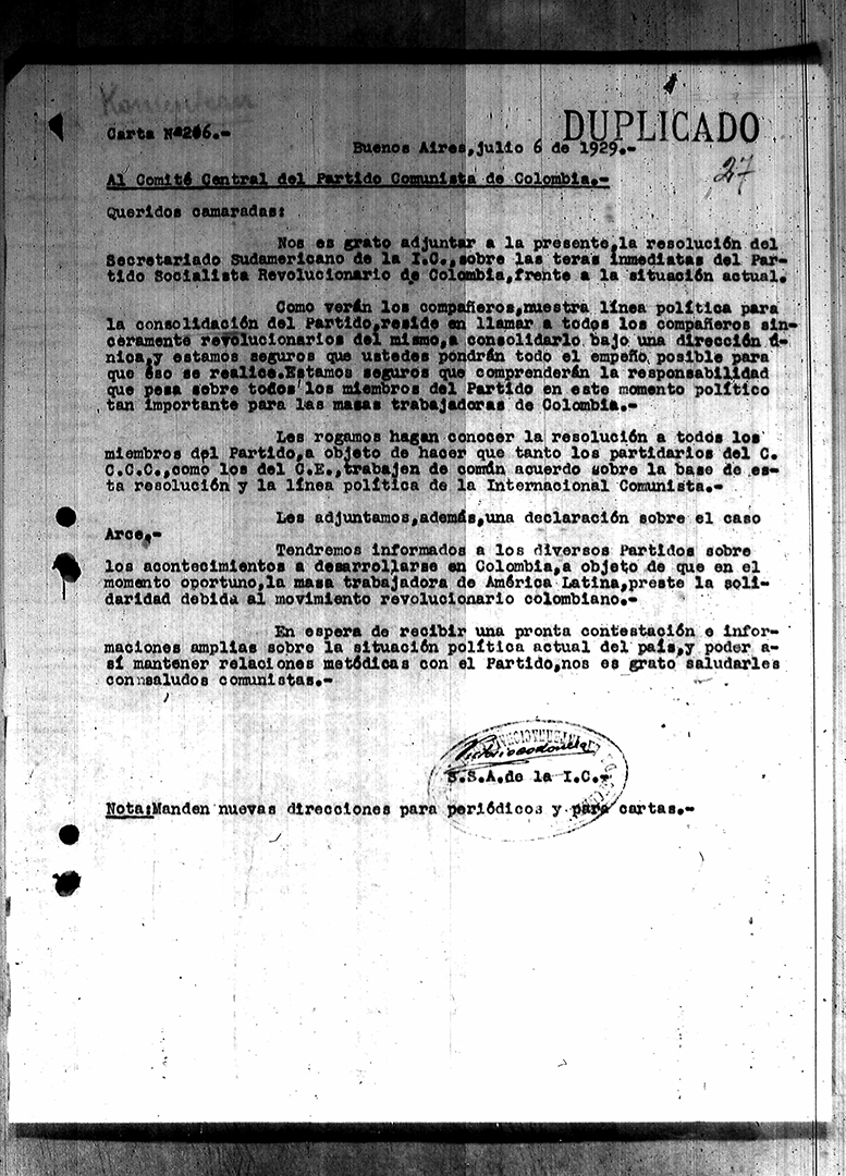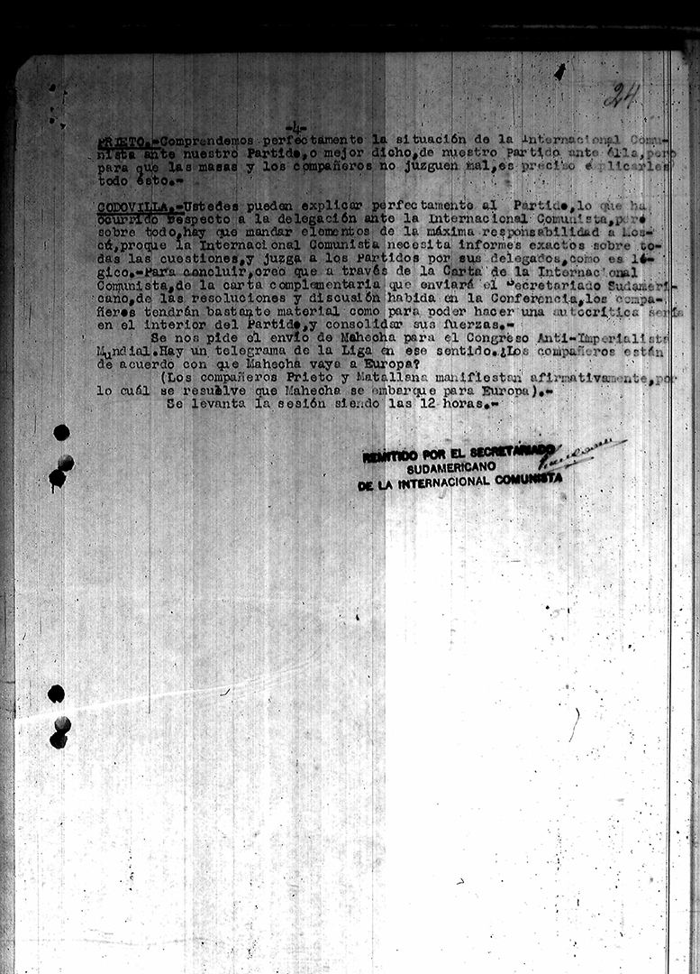 34. Reuniones del PSR con el secretariado sudamericano de la IC – Declaración del secretariado 1929