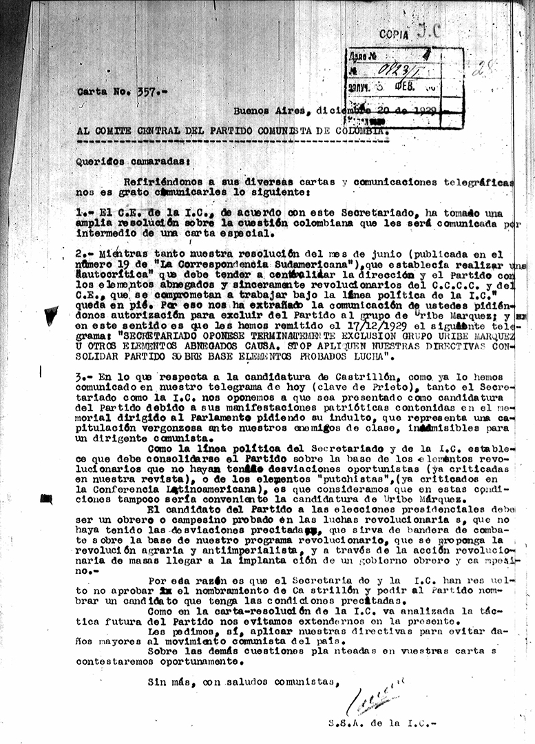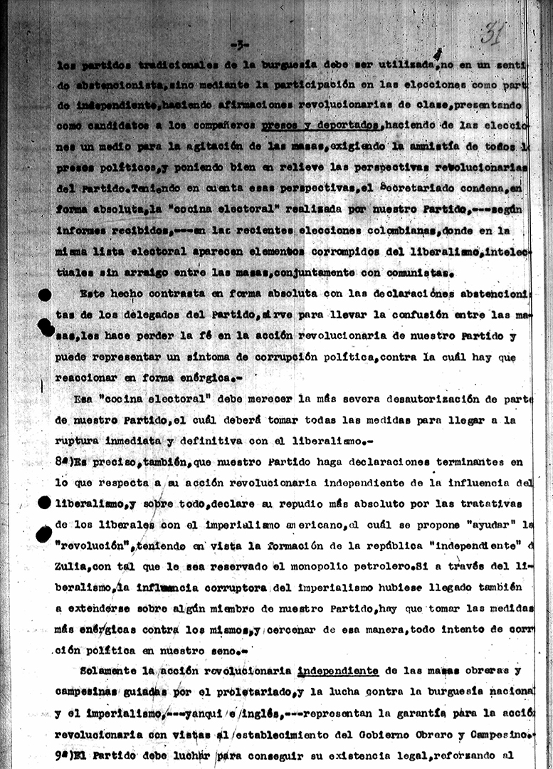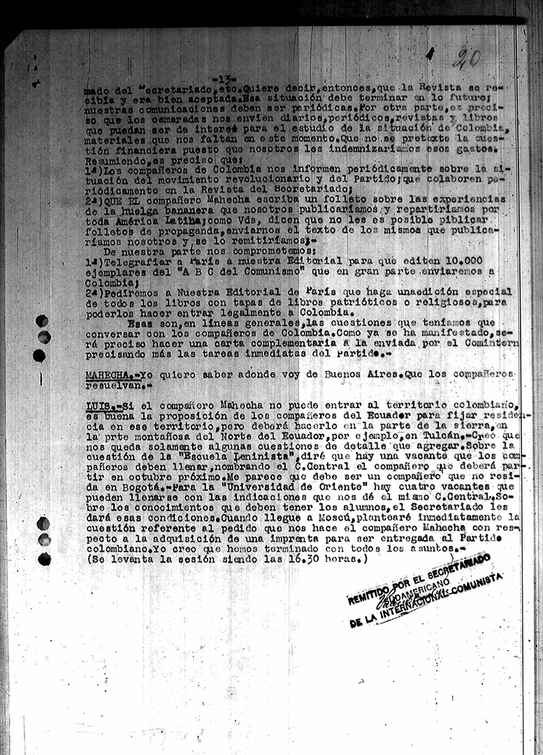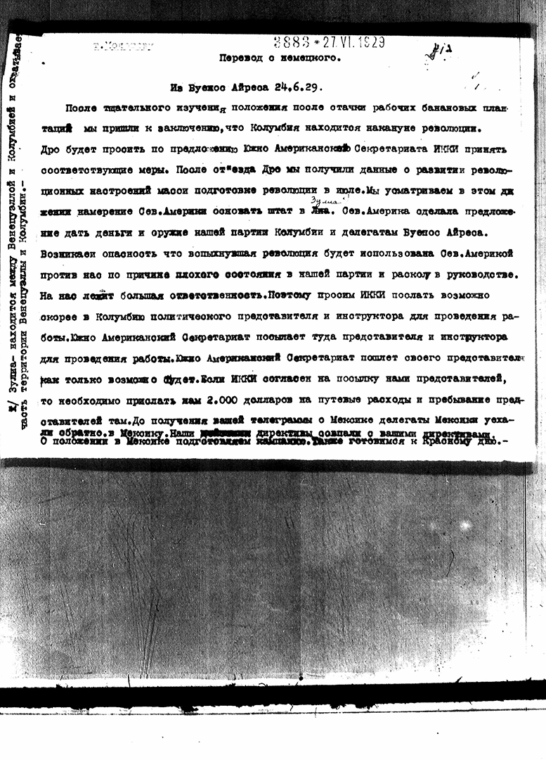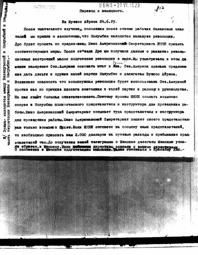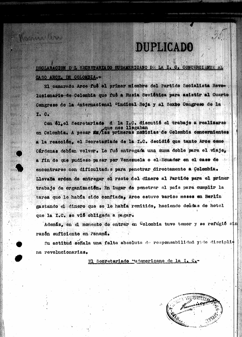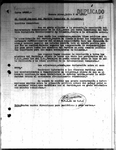 34. Reuniones del PSR con el secretariado sudamericano de la IC – Declaración del secretariado 1929